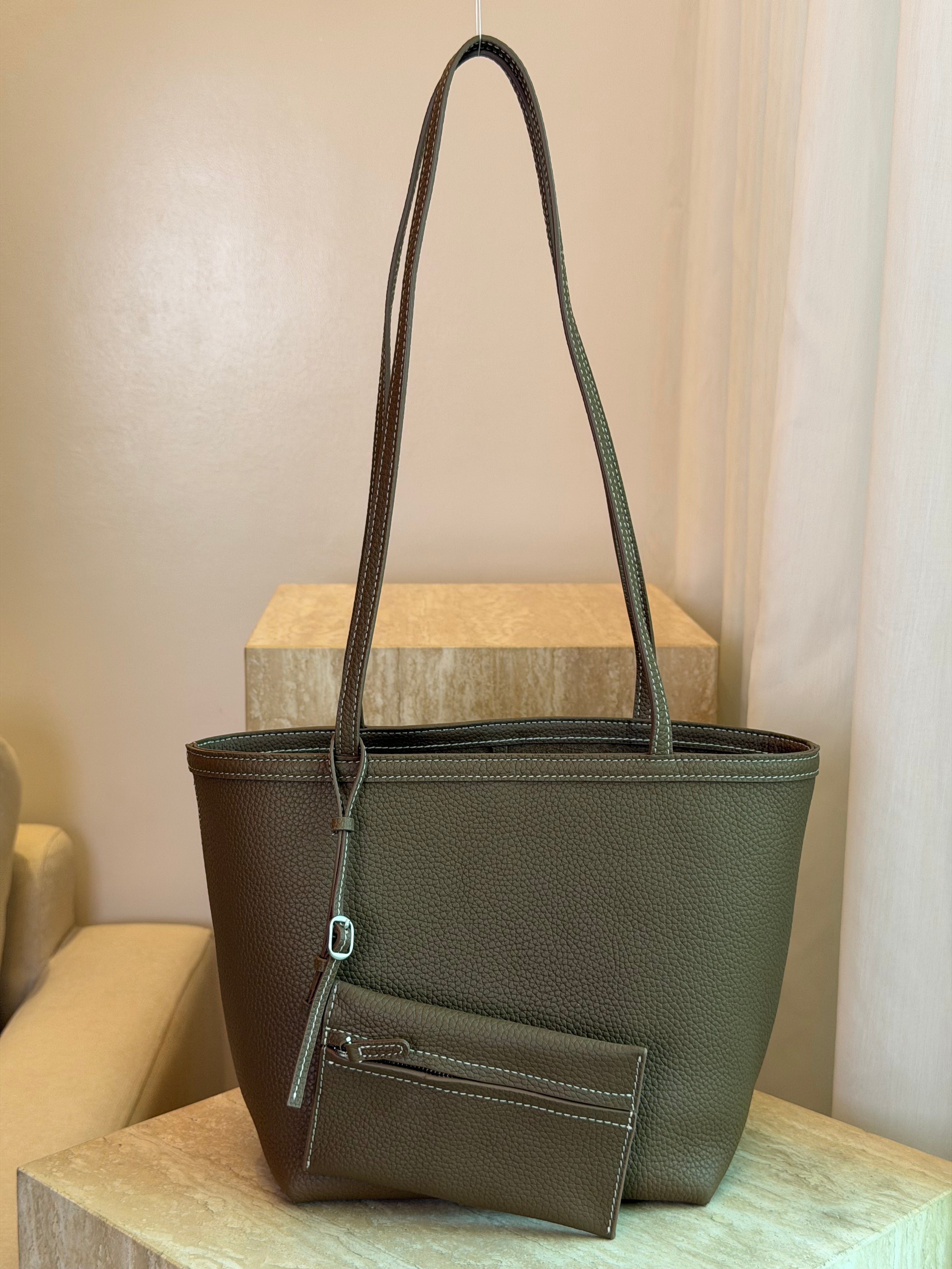 The Emma Shoulder Bag by TR Bespoke is a timeless leather handbag designed for refined, everyday elegance. Crafted from premium calf leather and fully leather-lined, it offers a luxurious feel with lasting durability. Elongated shoulder straps ensure comfortable wear, while contrast stitching highlights the bag’s artisanal craftsmanship. Designed with a spacious single compartment and a detachable zipped pouch for added versatility, the Emma is finished with a minimalist self-tie closure—making it an effortless choice from day to evening.