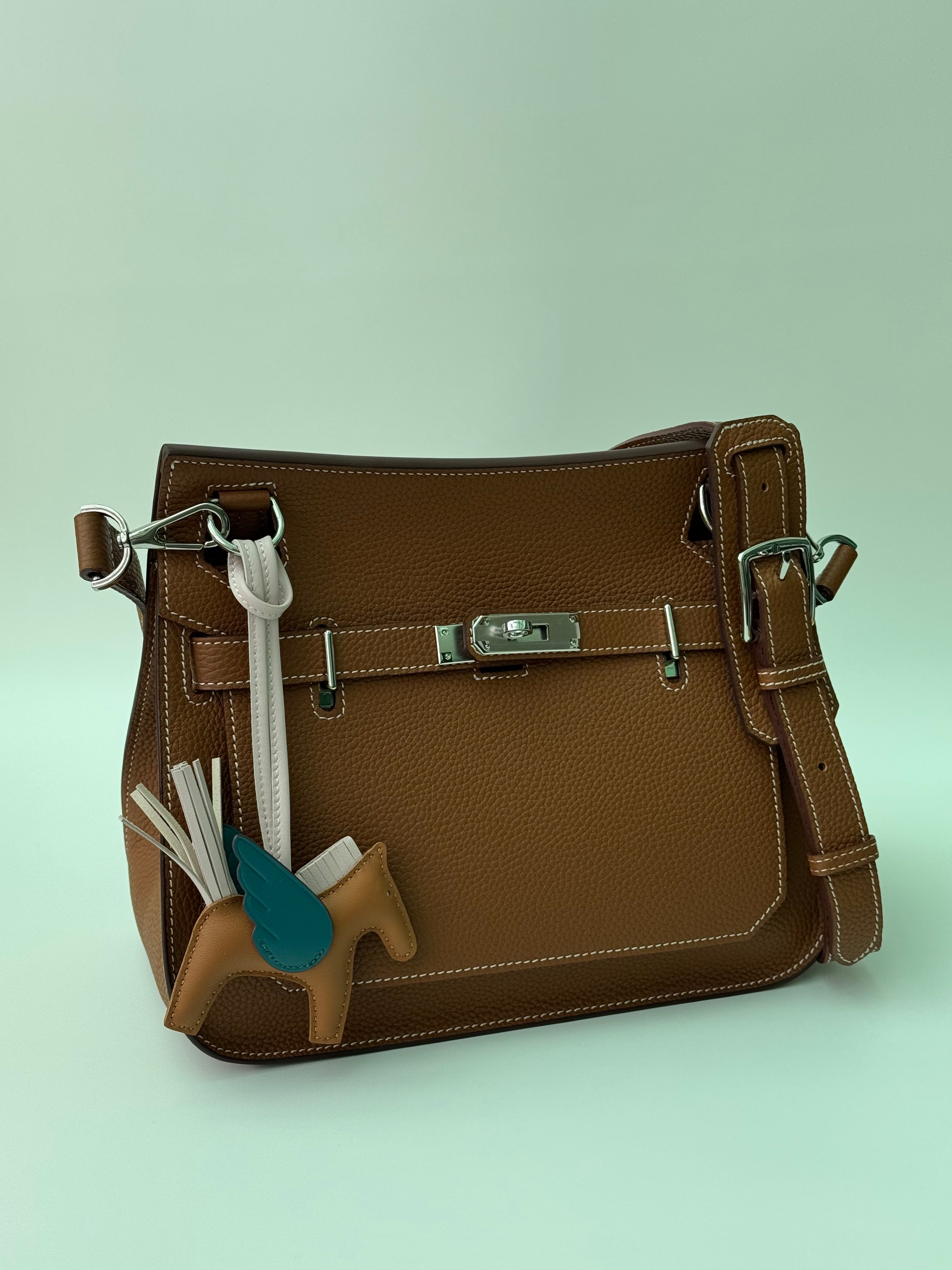 Introducing the Essential Crossbody Bag, your perfect travel companion. Its spacious interior and multiple compartments keep all your essentials organized, while the zippered pocket ensures easy access to your keys. The adjustable crossbody strap adds convenience to your daily commute. Crafted from genuine pebbled leather, this bag is both stylish and functional. Personalize it with your initials and elevate your travel experience. Fits a 13 inch laptop.