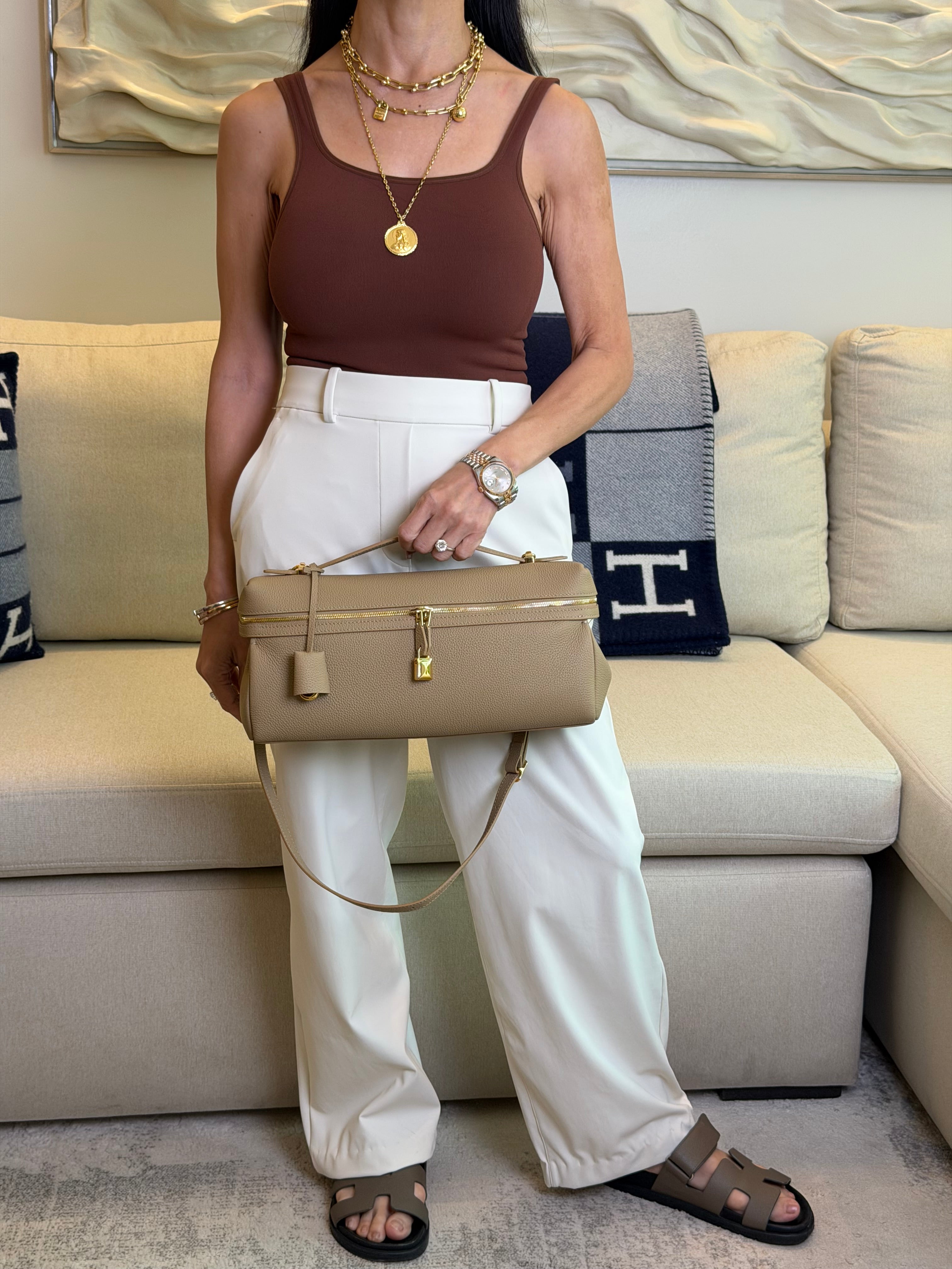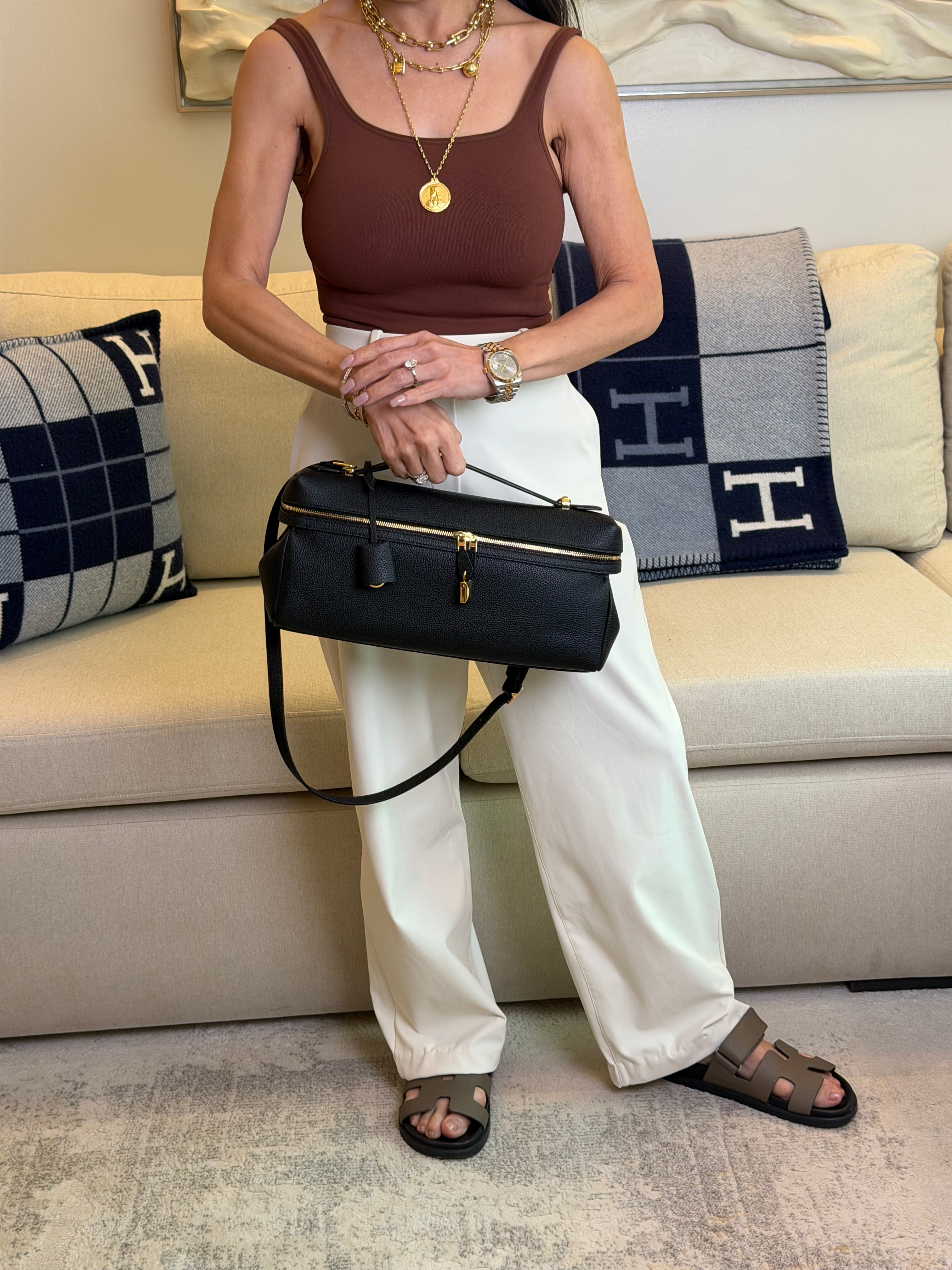 Versatile and endlessly refined, the Extra Bag L33 is a timeless leather clutch designed for modern, understated elegance. Crafted from fine-grained leather with an exceptionally supple feel, its elongated silhouette delivers both sophistication and everyday versatility. Designed to transition seamlessly from day to evening, it can be worn crossbody, carried in hand, or styled under the arm with the detachable strap removed.