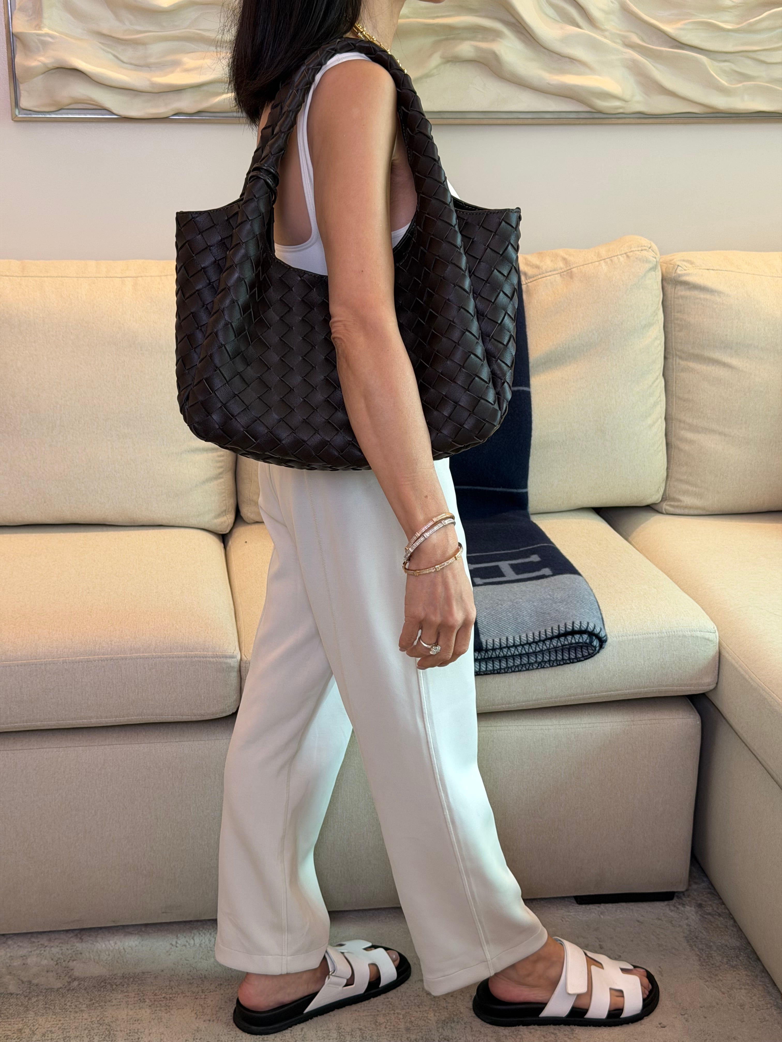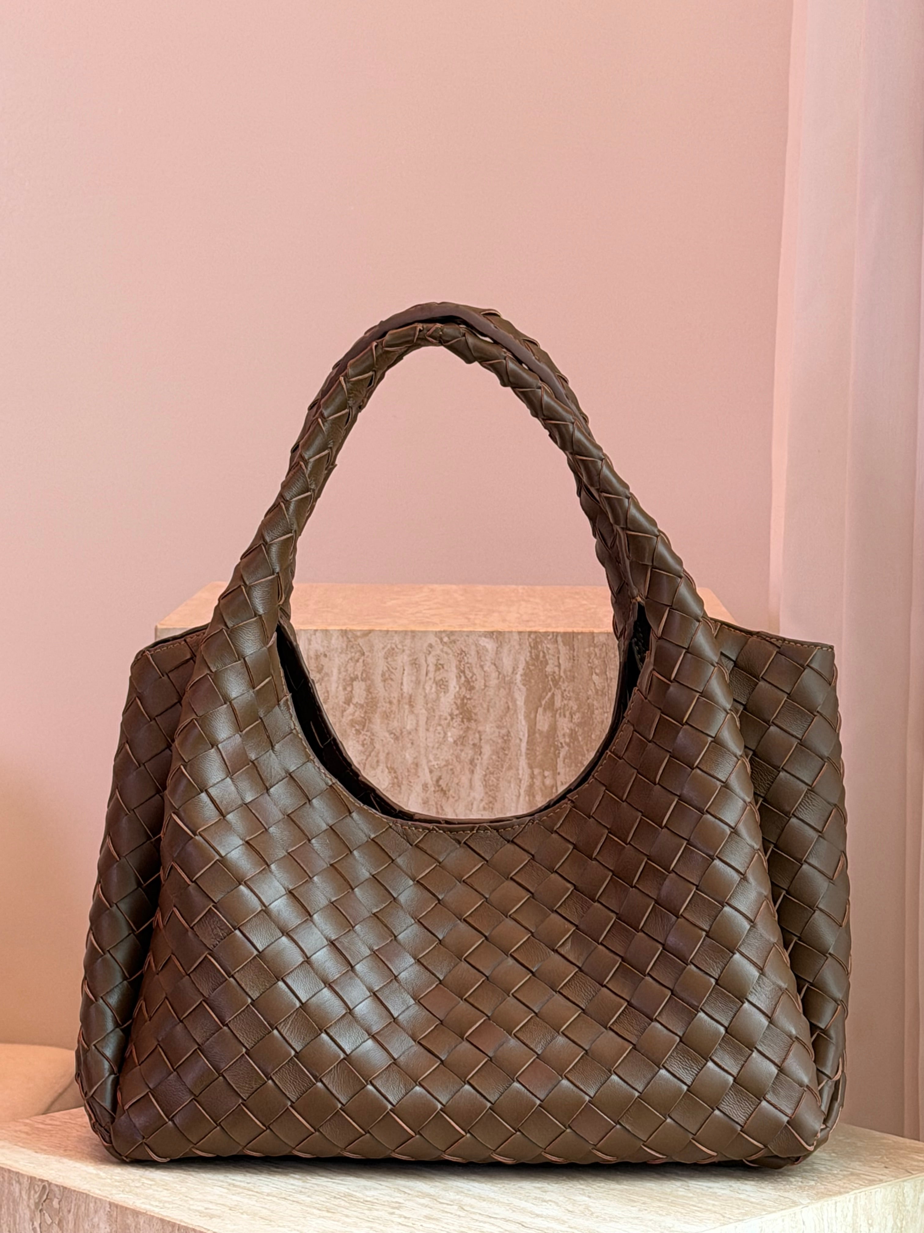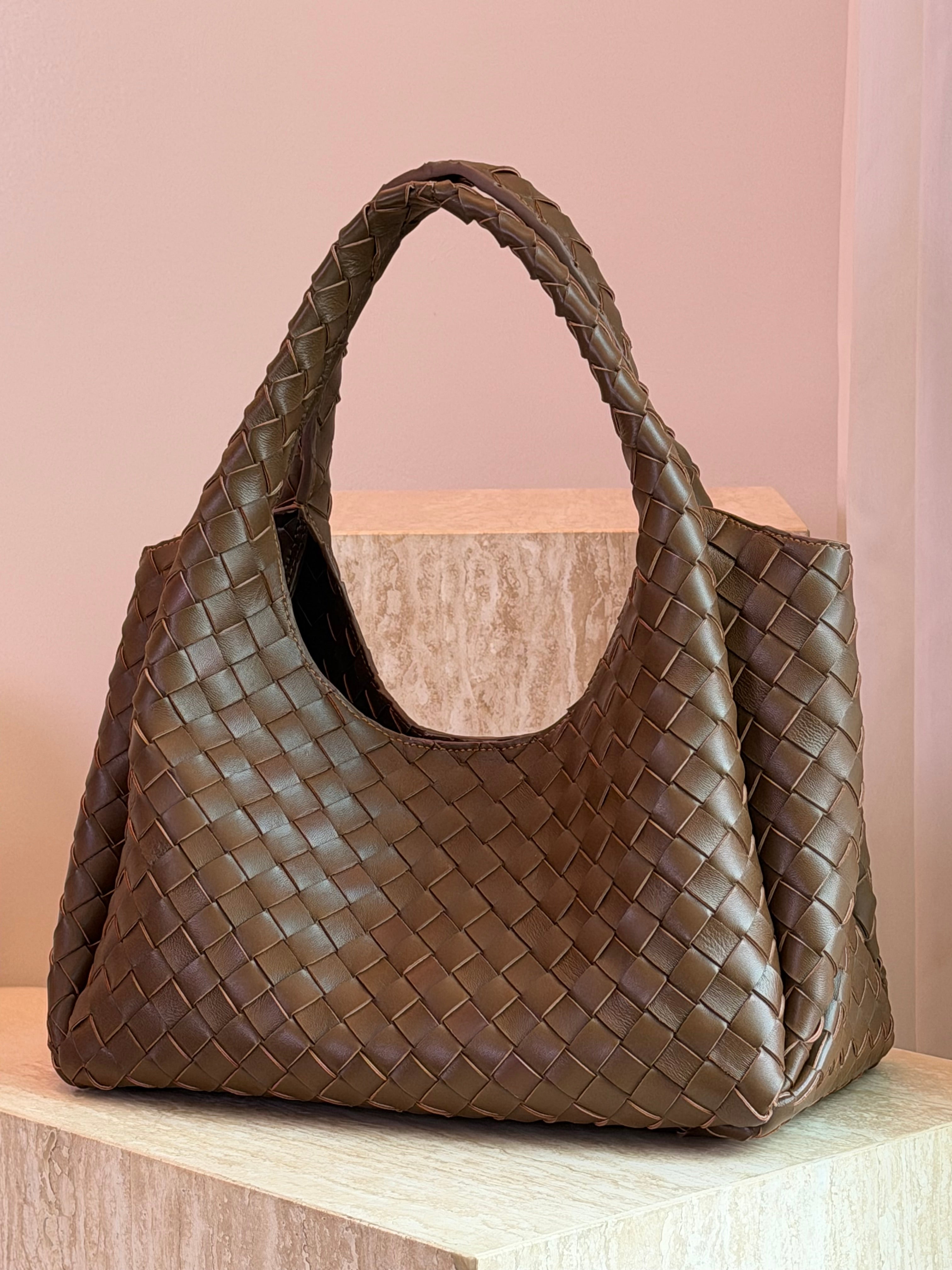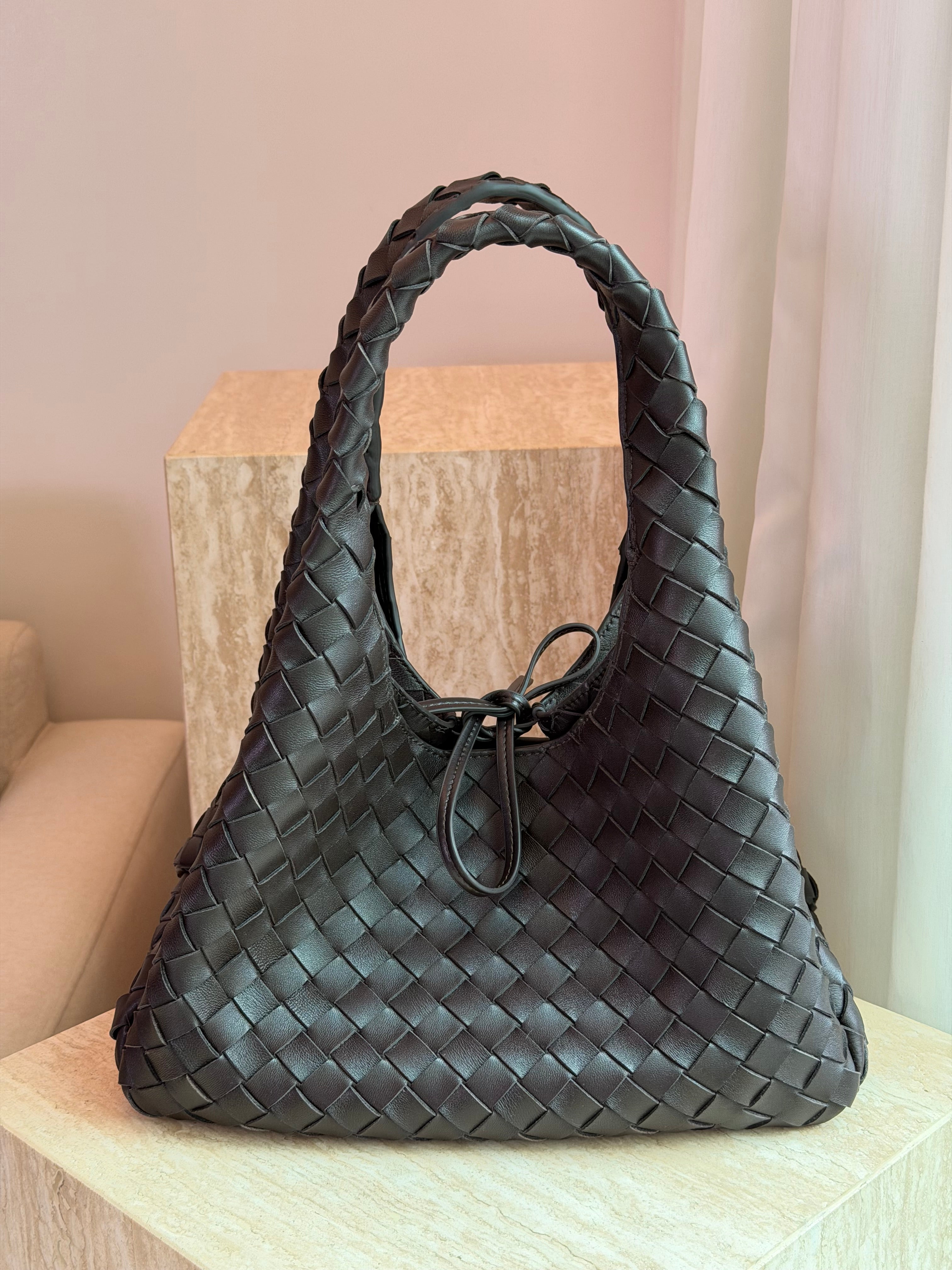Defined by an archival silhouette, the McKenzie Campana Shoulder Bag is crafted from supple sheepskin leather for a soft yet refined finish. A leather tie closure with a discreet hidden magnet offers effortless functionality while maintaining a clean, minimalist look. Unlined for a natural drape and finished with brass-tone hardware, this timeless piece balances heritage design with modern ease.